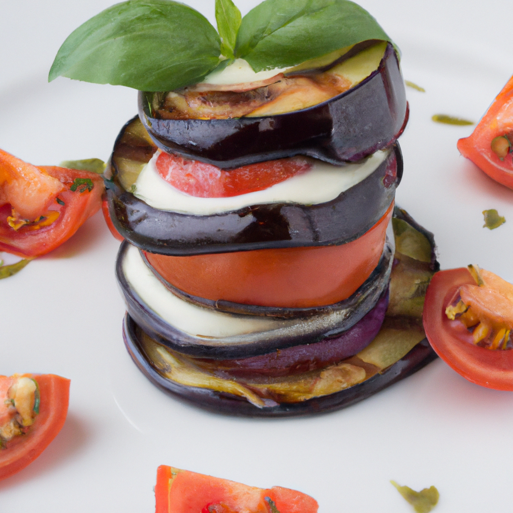 Tender grilled eggplant layered with fresh mozzarella, roasted tomatoes, and basil for a light yet satisfying Mediterranean-inspired dish.