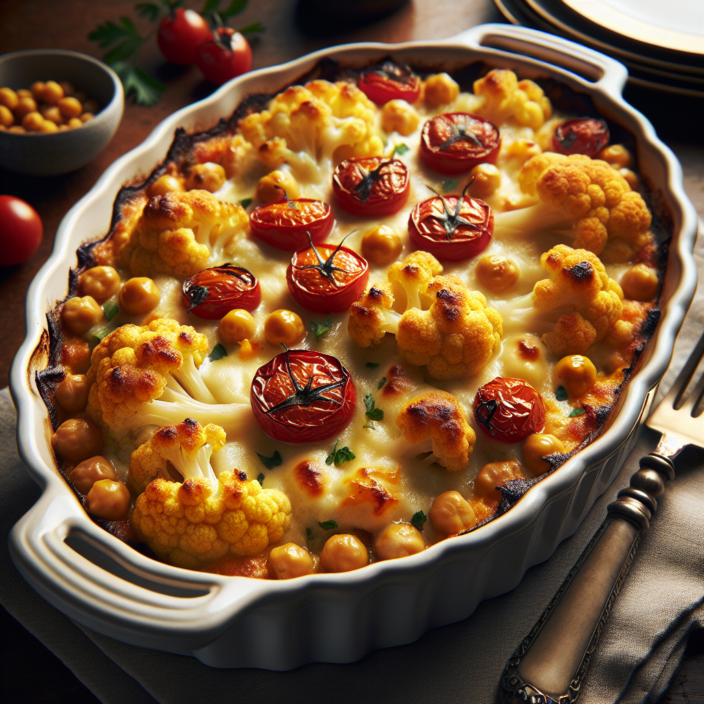 Cauliflower Chickpea Tomato Cheddar Bake