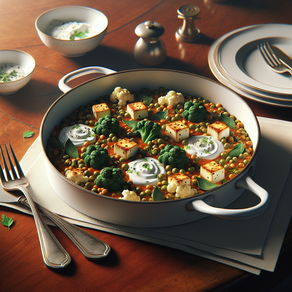 Tender Cauliflower and green Lentils simmered in a light Tomato Sauce with a touch of Greek Yogurt, then finished with golden Halloumi and fresh Parsley for a simple, protein-rich skillet meal for two.