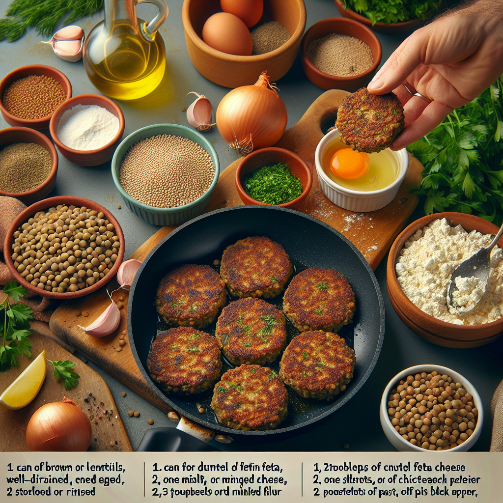 Delicious Lentil Feta Patties, gently fried up in the non-sticking pan with garlic