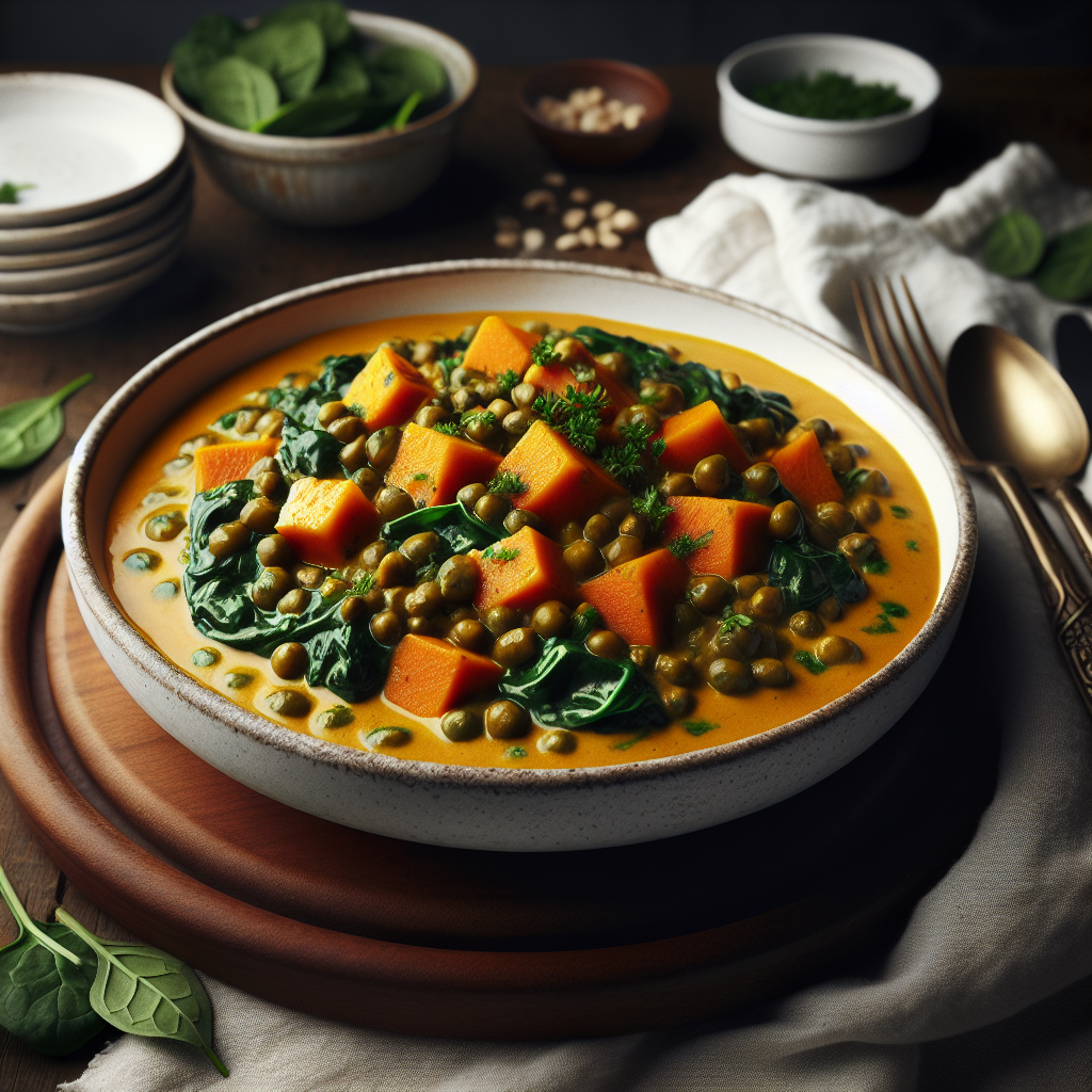 A creamy, mildly spiced curry with sweet potatoes and green lentils in a light cashew cream sauce — comforting, nourishing and full of flavour.