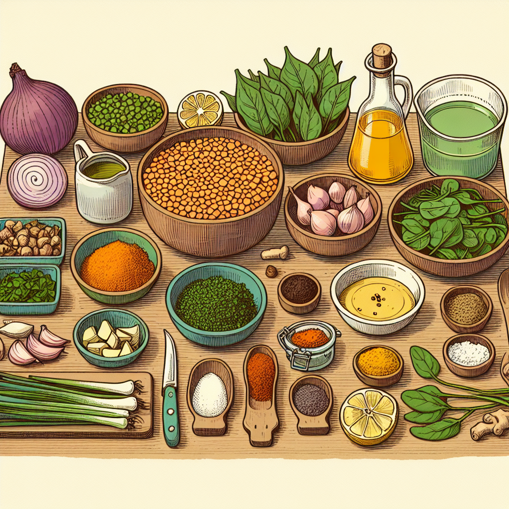 | Spinach, onion, garlic, ginger | 40 kcal |