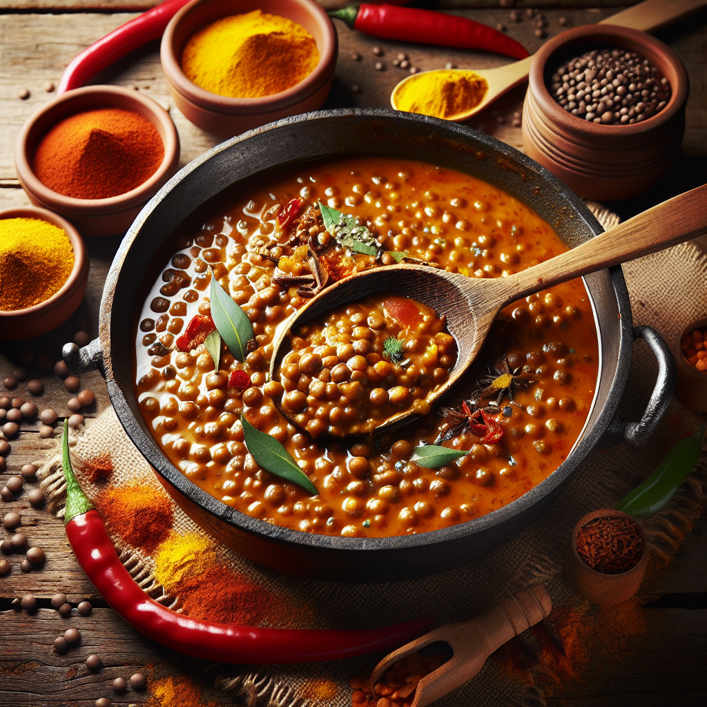 A creamy, mildly spiced curry with sweet potatoes and red lentils in coconut milk, perfect for a comforting vegetarian meal.