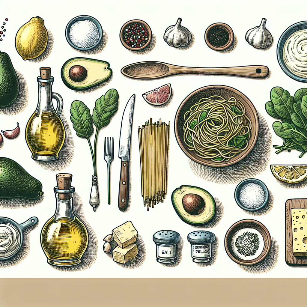 - In a blender, combine avocado, spinach, garlic, olive oil, yogurt, Parmesan, lemon juice, salt and pepper. Blend until smooth, adding a splash of reserved pasta water if needed.