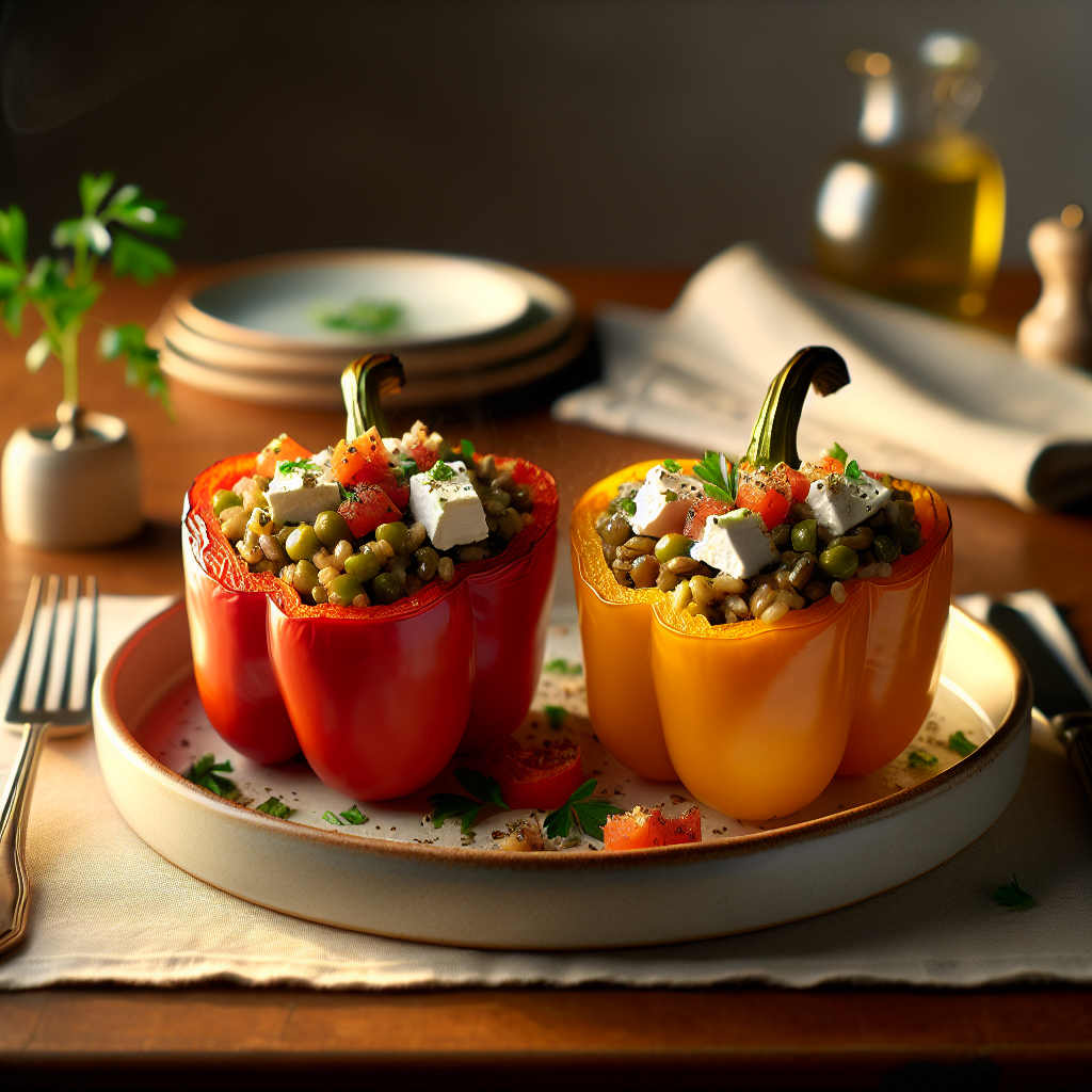 Mediterranean Feta, Lentil & Wild Rice Stuffed Peppers